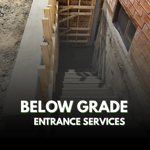 We offer below grade entrance construction, basement walkouts, egress window installation, concrete driveways, stamped concrete, foundation work, basement renovations, bathroom renovations, framing, flooring, painting, plumbing, and electrical services across the Greater Toronto Area.